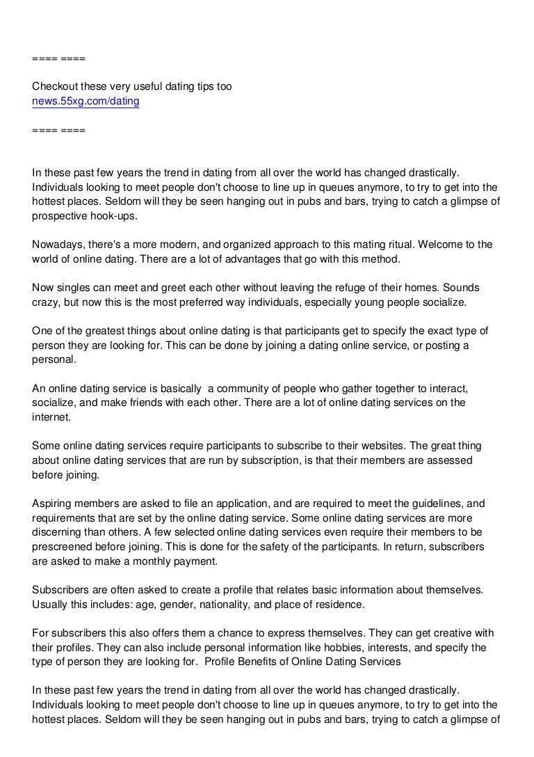 Online dating pros and cons the methods of finding love have drastically changed in today's digital age. Perhaps, you might be a little skeptical about the opportunities of success, yet you really should not be. Many online dating sites offer various types matchmaking services. One of the benefits of online dating is that it provides a secure space to get to know the other person without the tense atmosphere of a first date. As online dating has grown rapidly, more and more sites, apps, and platforms have emerged that cater to specific niches.